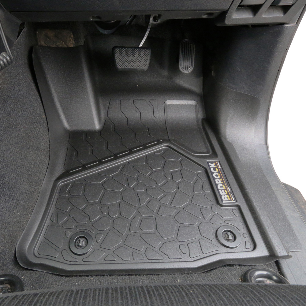 Our Bedrock Liners are designed, engineered, and manufactured by us from scratch to ensure they are a 100% perfect fit for your vehicle. Constructed with heavy duty TPE material, they're tough, durable, and pedal safe, complete with edge-to-edge protection all round.