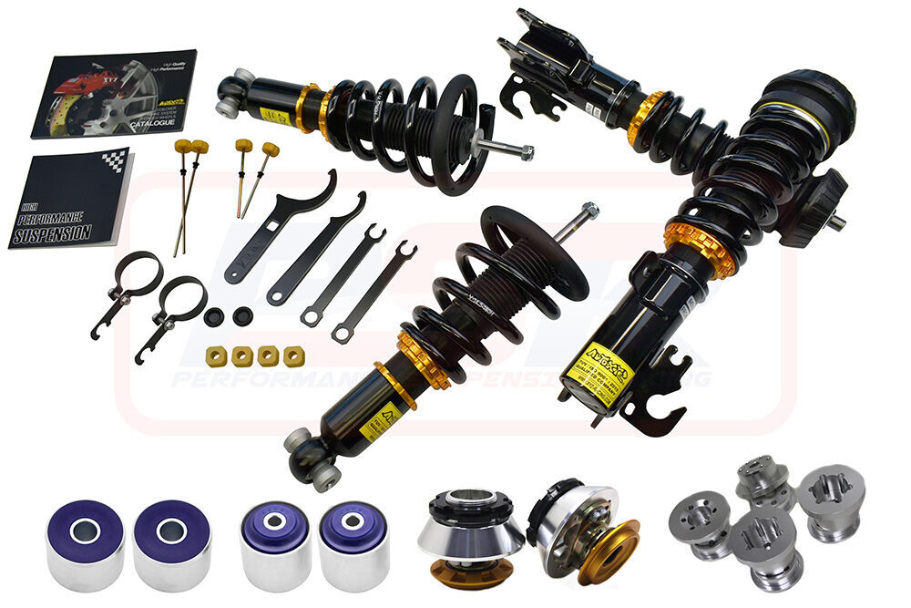 KIT CONTENTS: XYZ Coilovers, PSRCOM-002, PSRCOM-006, Radius Arm bushes, Rear Upper Inner Bushes