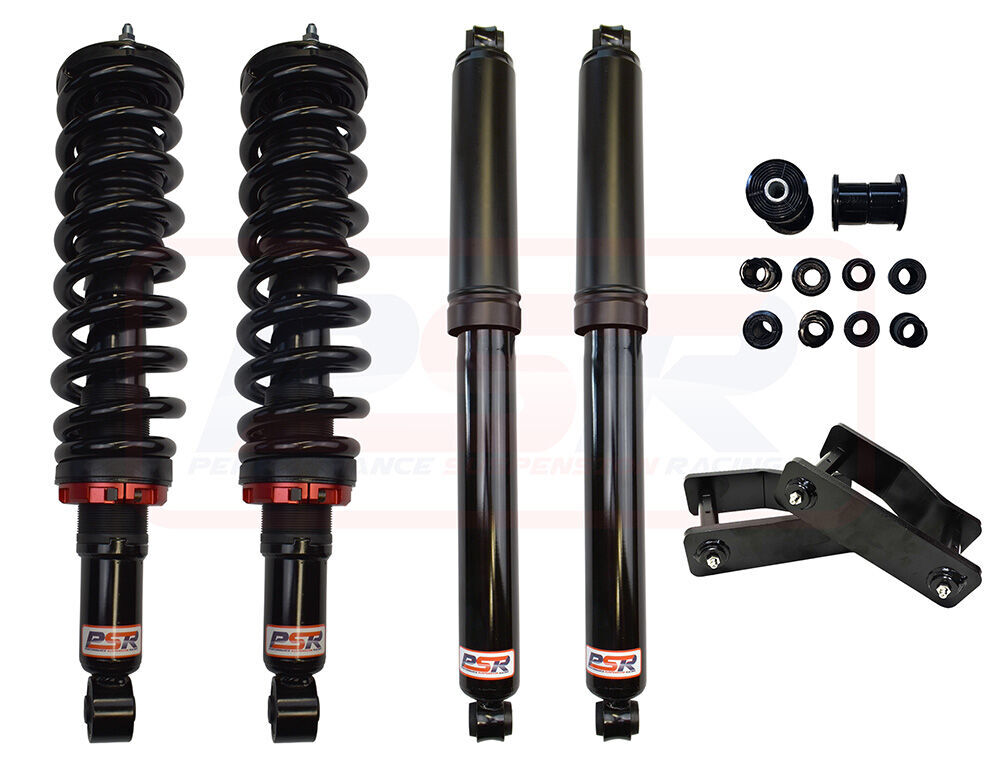 This system sits at 2" front and rear and includes our PSR TTG 2 - 4" height adjustable struts all pre-assembled with PSR coil springs and HD strut top mounts, PSR TTG rear shocks, 2" extended greasable shackle and bush kit.