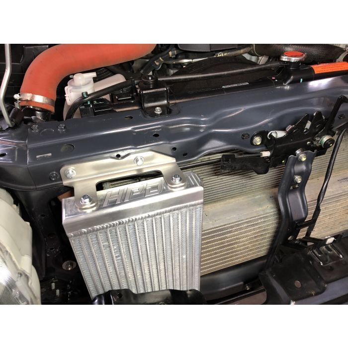All HPD transmission cooler kits come with everything required to install on to your vehicle. Kit consist of transmission cooler, stainless steel laser cut bracketry, billet CNC adaptor plate, hose tail fittings, support clamps, insulation, oil hose, nuts, bolts, washers and installation instructions.