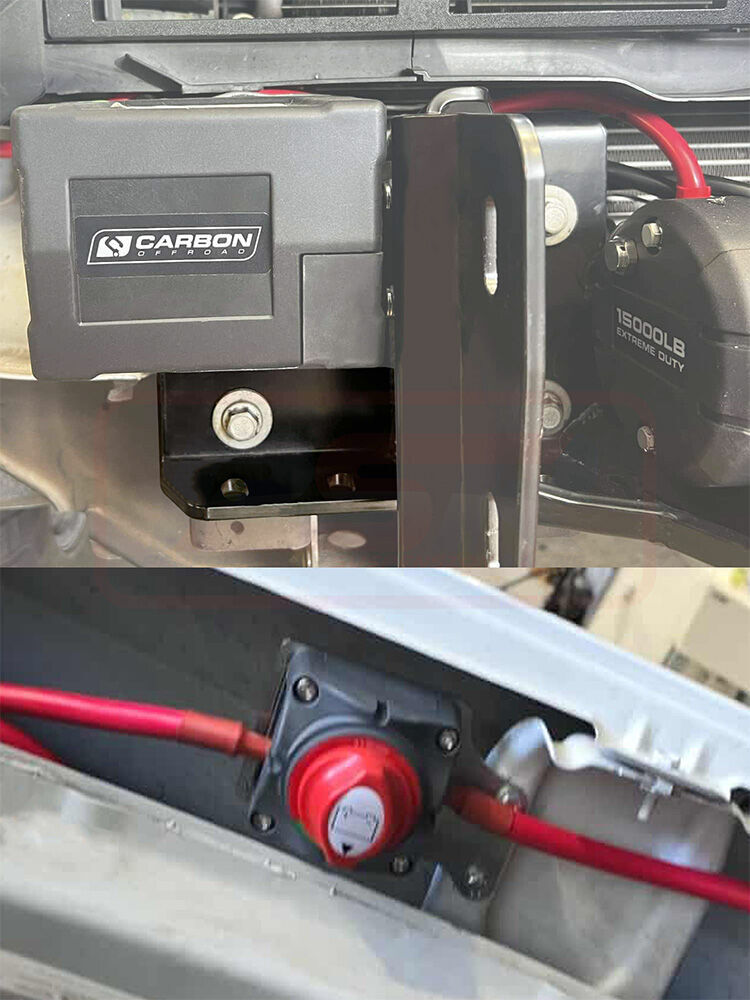PSR's Chevrolet Silverado 2020-On 2500-3500 Khaos Bar Carbon Winch Relocation Bracket is designed to relocate the Carbon Winch control box and isolation switch to suit PSR's Chevrolet Silverado 2020-On 2500-3500 Khaos Bar.