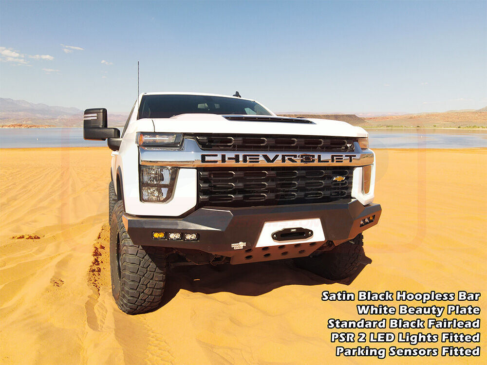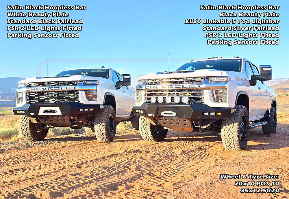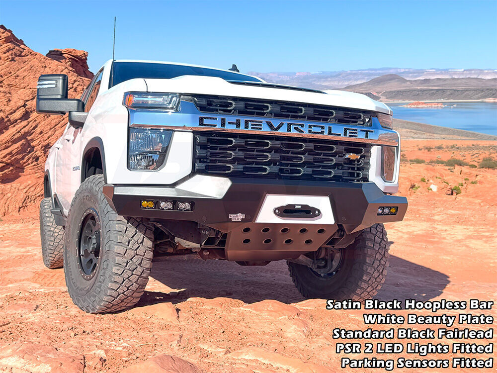 PSR's Chevrolet Silverado 2020-2023 2500-3500 bar is available in multiple variations, Hoopless or Sheet Metal Hoop, or light the way with various lighting options to change the look of the bar!