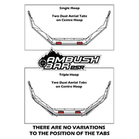 A huge feature of the Ambush Bar design allows the purchase of a Hoopless bar and at a later stage a hoop variation can be added allowing you to change the look of the bar. This applies to the Sheet Metal or Low Single Hoop which are bolted to the bar, or if purchased initially will be supplied assembled to the bar.