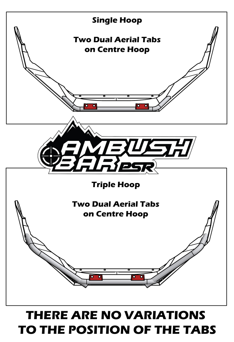Dual twin aerial mounts come standard on Single and Triple Hoop and are positioned on the left and right of the center hoop. (See picture in listing for location).